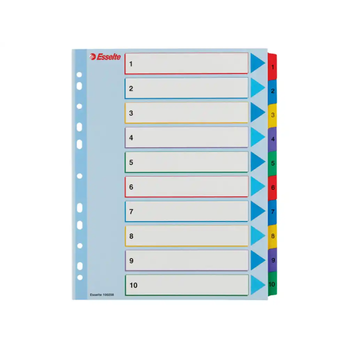Indice Esselte Cartulina Mylar Borrable Numerico A4+ Pestañas 1-10 11 Taladros