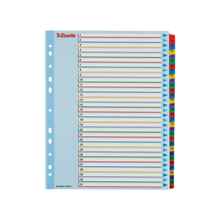 Indice Esselte Cartulina Mylar Borrable Numerico A4+ Pestañas 1-31 11 Taladros