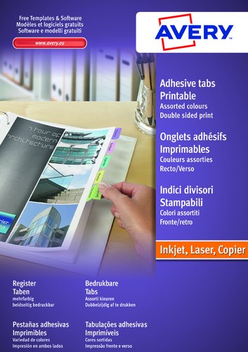 Etiquetas Adh.Impr.Avery A4 Indices Colores Surtidos Inkjet/Laser Caja 4H 33X13 Mm 96 Uds.(05412501)