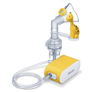 - Accesorios: nebulizador, tubo de boca, mascarilla de silicona para niño, mascarilla de silicona para bebé, tubo flexible de aire comprimido, pieza acodada, figura de jirafa acoplable, adaptador de red con cable micro USB y filtro de repuesto.