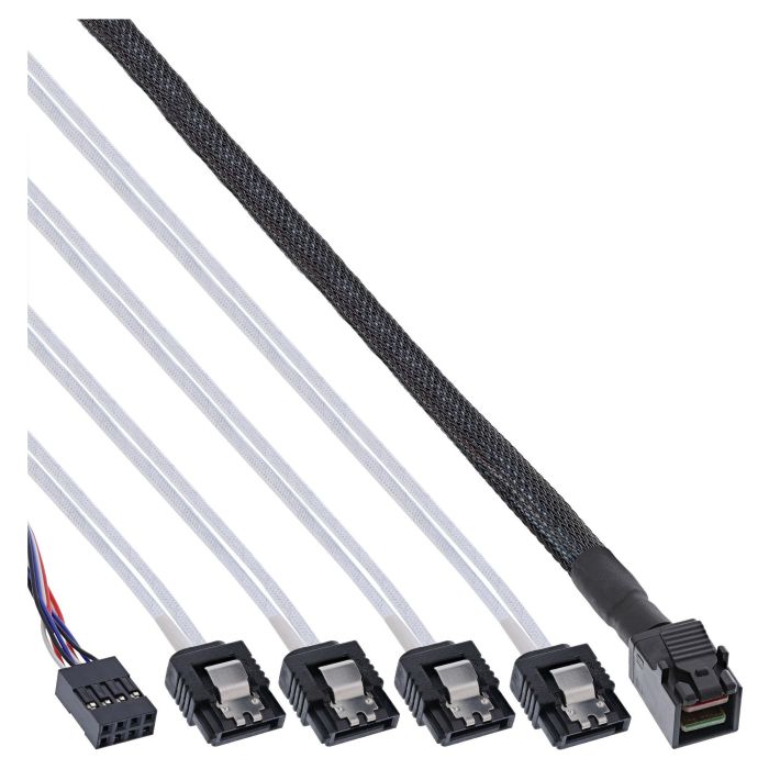 InLine 27630B Cable Adaptador Mini SAS HD (SFF-8643) x4 a 4x SATA con Sideband, 1 Metro, Negro