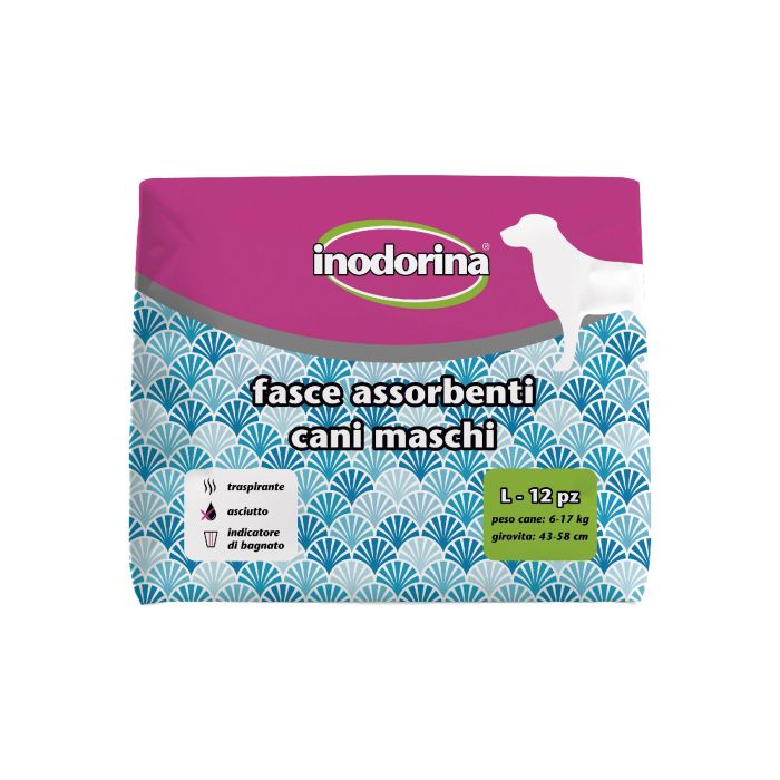 Inodorina Pañal Absorbente Machos Talla L 12 Piezas para Perros Incontinencia Postoperatorio Viajes Higiénico
