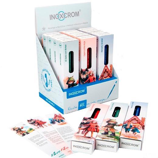 Inoxcrom Bolígrafo Gel Especial Cuentos - Caperucita, Gato con Botas, Hansel & Gretel - Expositor 12 Unidades