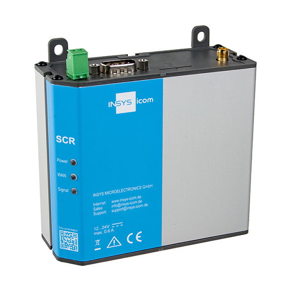 INSYS icom SCR-L200 Router LTE-M 4G con 2x Ethernet, 1x RS232, VPN, BGP/OSPF/RIP, Montaje DIN/Pared, IP40, 105x90x42 mm