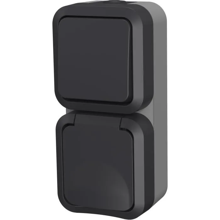 QUARX Interruptor doble + Toma vertical exterior vertical IP55 250V 16A