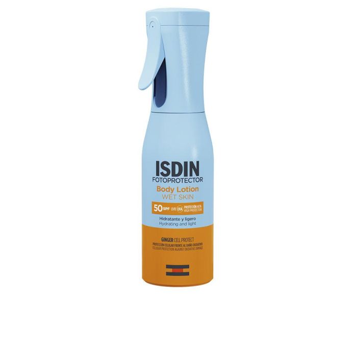 ISDIN Fotoprotector Loción Corporal en Spray SPF50 250 ml - Protector Solar con Ginger Cell Protect para Piel Sensible y Atópica, Hidratante, Resistente al Agua