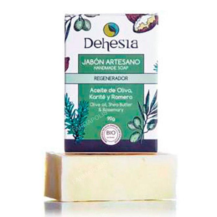DEHESIA Jabón Artesano Regenerador Bio 100Gr con Limón, Romero y Karité para Piel Seca, Vegano