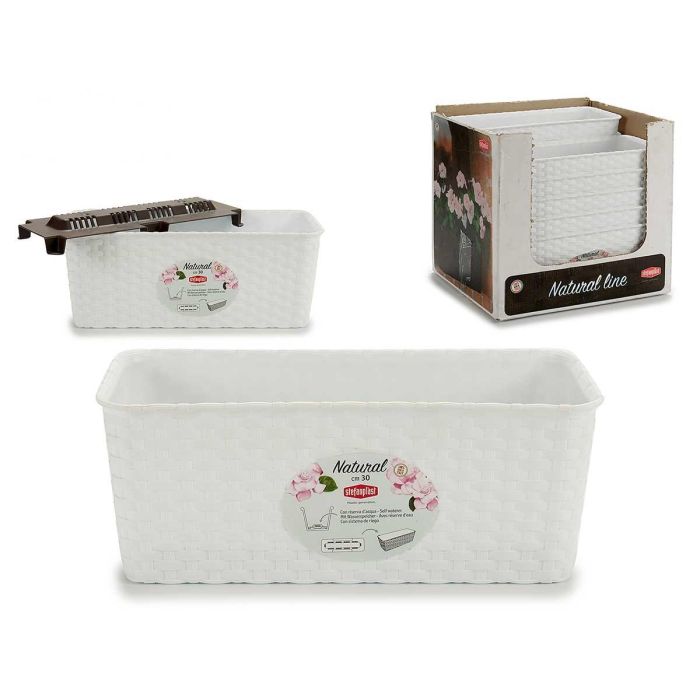 Stefanplast Jardinera Natural con Reserva de Agua 30 cm Blanca 29x12.5x11 cm (Set de 12)