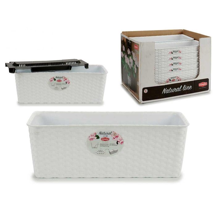 Stefanplast Jardinera Natural con Reserva de Agua 39x15x13.5 cm Blanca