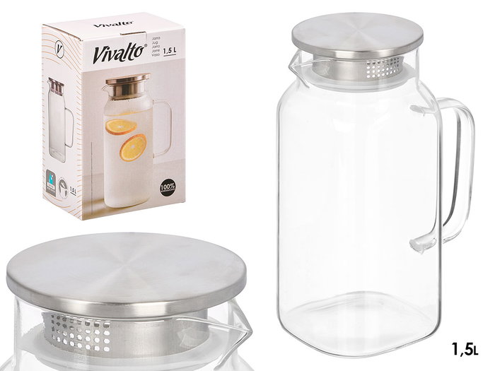 JARRA BOROSILICATO CUADRADA TAPA ACERO 1,5L