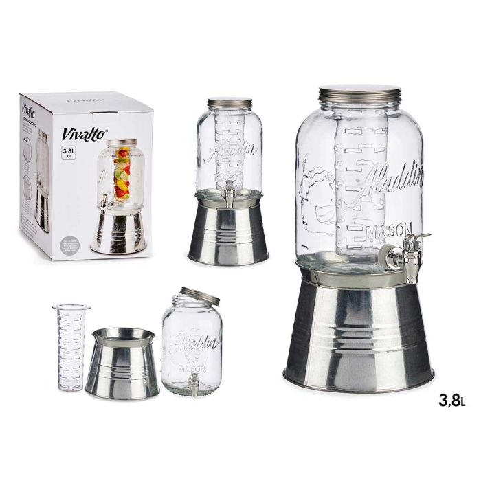 JARRA CON SOPORTE Y ENFRIADOR 3800ML PLATA