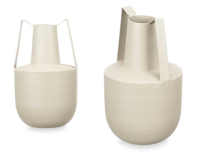 Giftdecor Jarron Acero Doble Asa Crema Pastel Marron Claro 14x24x14 cm (Set de 6)