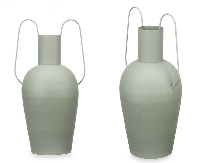 Giftdecor Jarrón de Acero Verde Pastel con Doble Asa 45x24x18 cm (Set de 4)