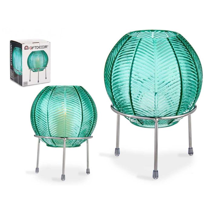 JARRON BOLA CRISTAL AZUL BASE METAL PLATA