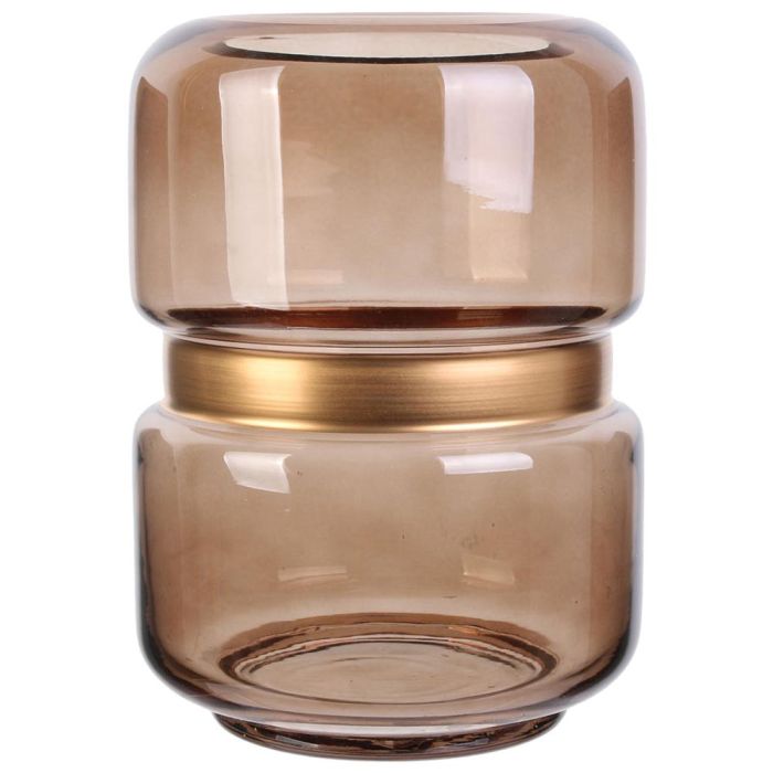 - Original jarrón marrón con franja dorada, muy decorativo y elegante.