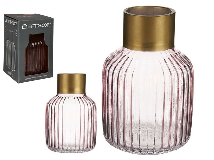 Giftdecor Jarrón Cristal Rayas Oro Pequeño Rosa 12x18x12 cm (Set de 6)