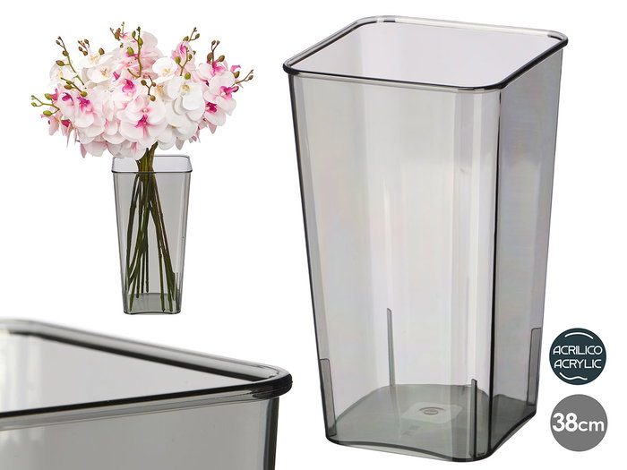 JARRON APARENZA CUADRADO ACRILICO GRIS 38CM