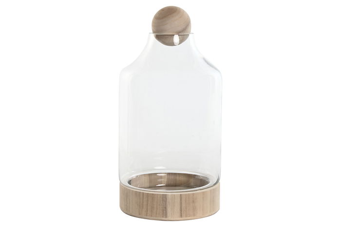 DKD Home Decor Jarrón Transparente Natural Cristal Madera 21 x 42 x 21 cm