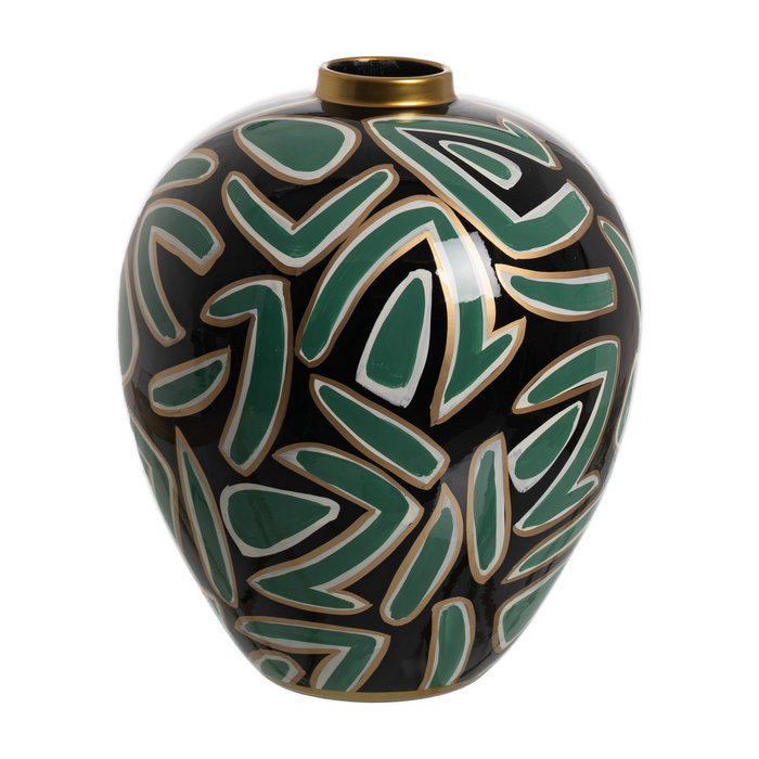 Jarrón Negro-Verde Porcelana Decoración 28 X 28 X 34 cm