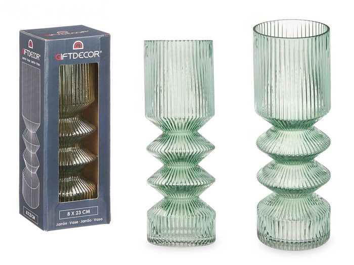 Giftdecor Jarrón Raya 2 Cuerpos Verde 8x23x8 cm (Set de 8)