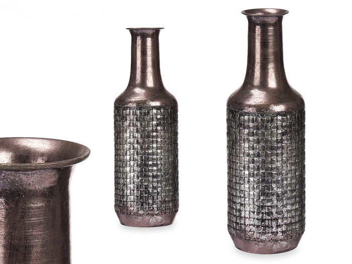 Giftdecor Jarron Relieve Alto Plata Envejecido 14x46x14cm (Set de 4)