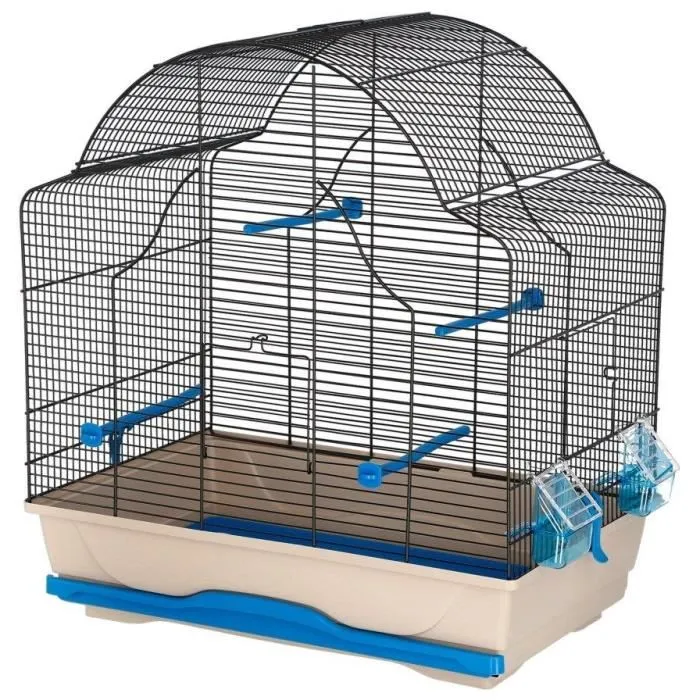 Jaula para pájaros con bandeja extraíble, perchas y comederos incluidos, color azul beige.