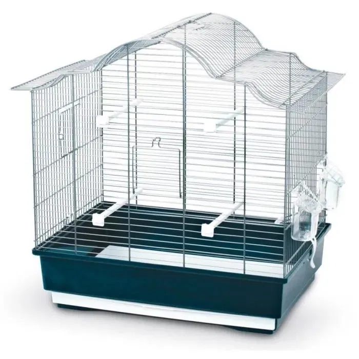 Jaula para pájaros Gabbia Sophia de KERBL - Con piso removible - Con barras para sentarse y comederos - Dimensiones: 57 x 36 x 56cm - Color: azul oscuro.