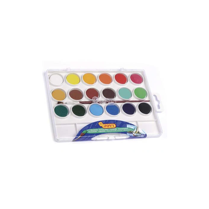 Jovi Acuarelas en Pastillas 22 mm con Pincel, Colores Surtidos, Estuche 18 Ud