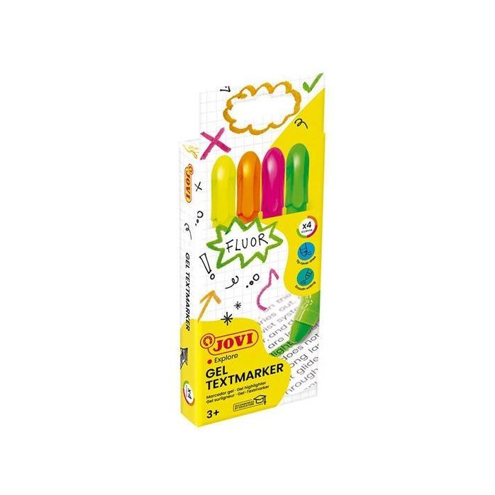 Jovi Marcador Fluorescente Gel Textmarker Neon De Gel En Stick 140 mm Estuche 4 Ud Colores Surtidos