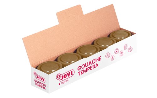 La Témpera escolar Jovi es muy fluida, se pueden mezclar entre sí, rinde mucho, cubre perfectamente, seca rápido y no se descuelga. Es ideal para pintar papel, cartulina, madera, tela, pasta de modelar o barro bastaría con un pincel, un rodillo o una espátula para conseguir los resultados más espectaculares.
