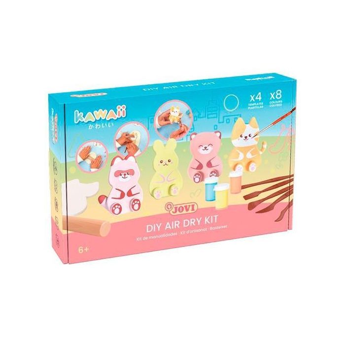 Jovi Kit de Manualidades Kawaii con Pasta Endurecible Air Dry 500 gr + 4 Plantillas + Pinturas + Complementos