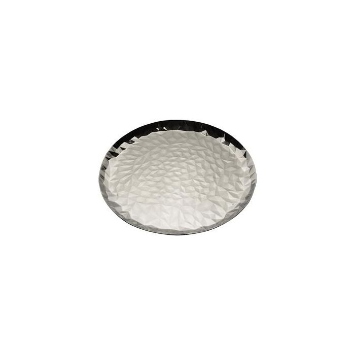 - Bandeja redonda de hoja en acero con efecto cristalizado.