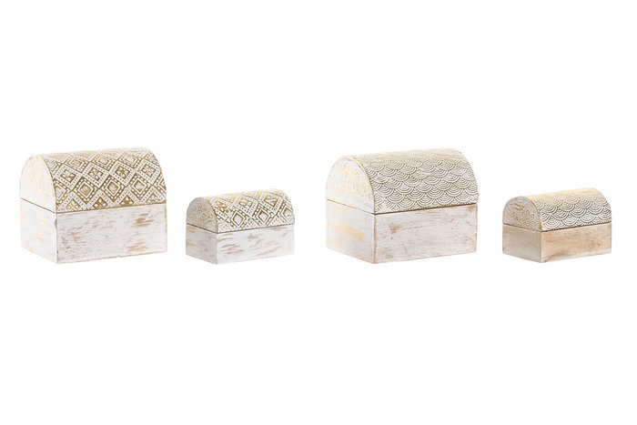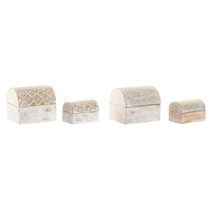 DKD Home Decor Set de 2 Joyero Arabe Dorado Blanco Rozado Aluminio 7.5 x 8 x 10 cm (6 Unidades)
