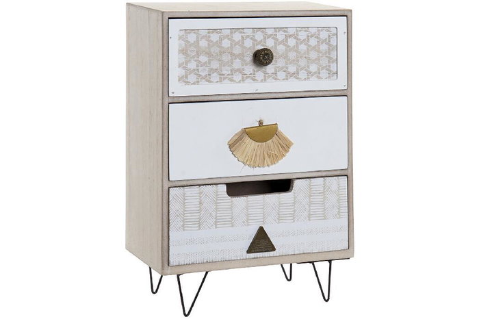 DKD Home Decor Joyero Boho Blanco Beige Madera Metal 10 x 30 x 20 cm (2 Unidades)