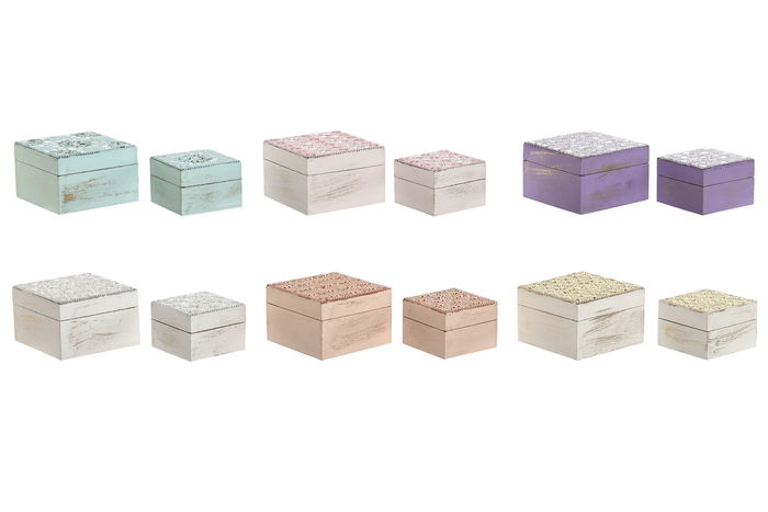 DKD Home Decor Joyero Indio Rosa Lila Set de 2 Piezas Materiales: Mango, Acrilico Dimensiones: 10 x 6.6 x 10 cm Surtido Multicolor (6 Unidades)