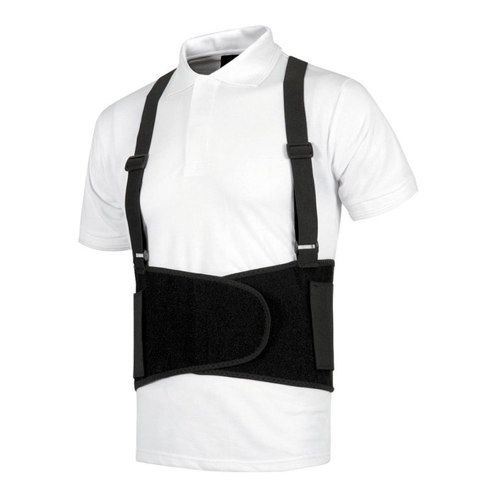 Faja lumbar con tirantes, de diseño simple y fácil colocación gracias a su elasticidad y sistema de ajuste mediante velcro y bandas elásticas supletorias traseras que permiten una buena adaptación facilitada por su ergonomía - talla m