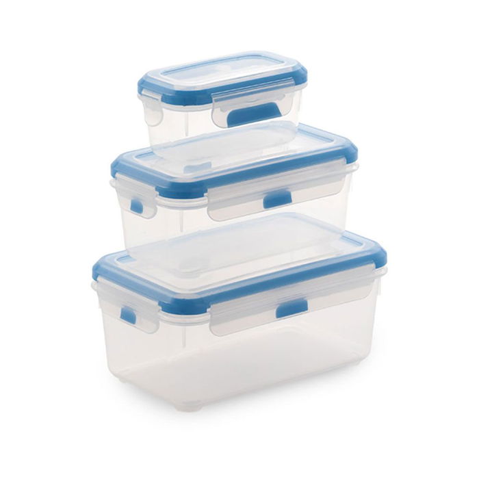Set de 3 fiambreras super lock 1,9 l + 1 l + 380 ml. apilables y encajables, 0%bpa, tapa antigoteo apto para lavavajillas y microondas, no apto para horno ni grill