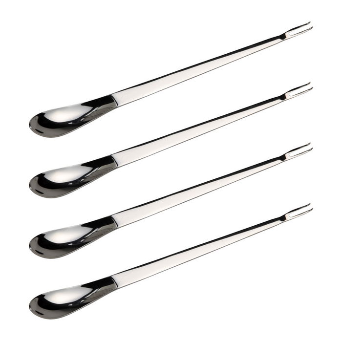 - Punta doble: cuchara en un extremo, tenedor en el otro.