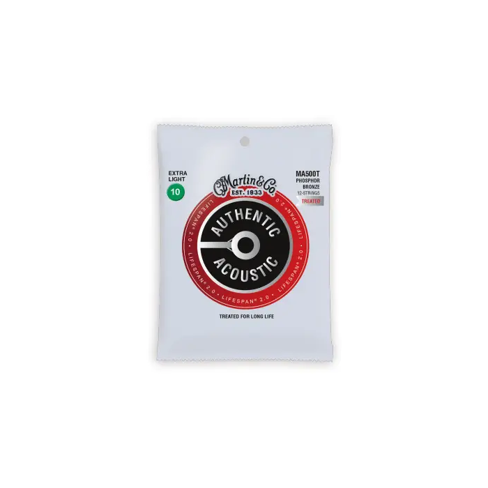 Martin Authentic Lifespan®2.0 92/8 Phosphor Bronze Cuerdas para Guitarra Acústica 12 Cuerdas Extra Light 10-47