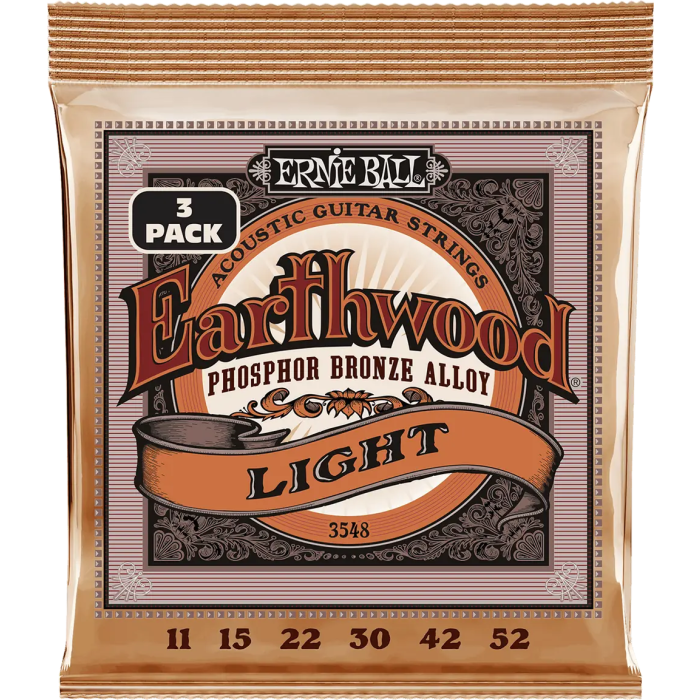 ERNIEBALL Juego Acústica Earthwood 92/8 Phosphor Bz. Light 11-52 Tripack (3) Cuerdas Guitarra Acústica Bronce