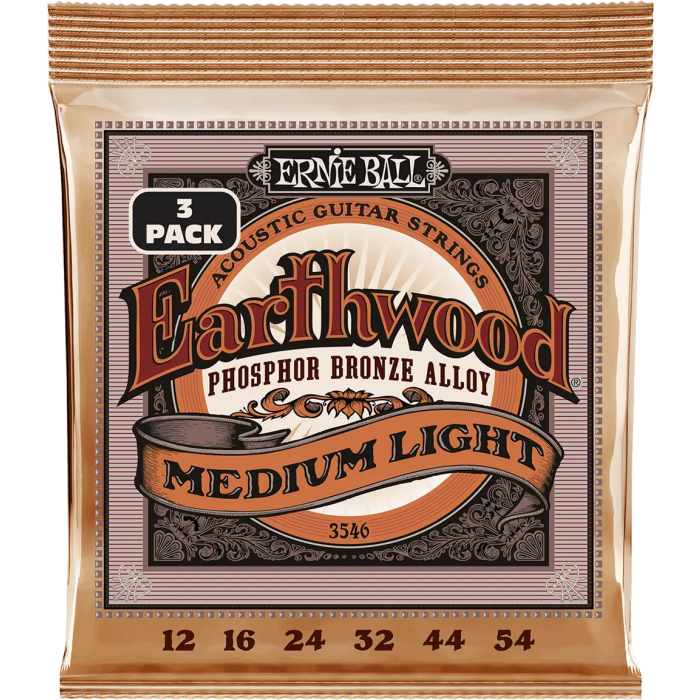 Ernieball 92/8 Phosphor Bz. Medium Light 12-54 Tripack (3) Juego Acústica Earthwood Cuerdas Guitarra Acústica Mediana Ligera Bronce Fósforo