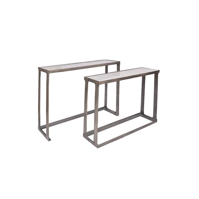 DKD Home Decor Alu antik 23 Consola Mármol Aluminio Plateado Blanco 108 x 79 x 30 cm Set de 2