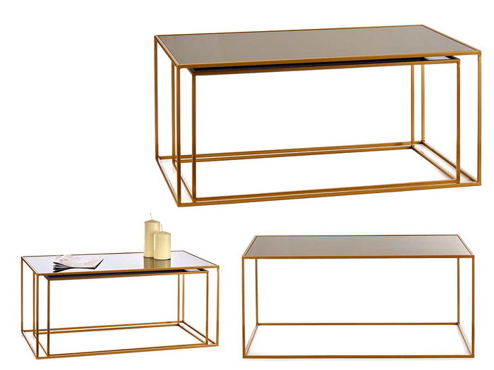 SET 2 MESAS RECTANGULARES NEGRO ORO