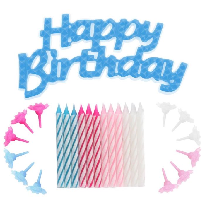 Party Time Juego de 24 Velas Aniversario con 12 Soportes y Decoración 'Happy Birthday'