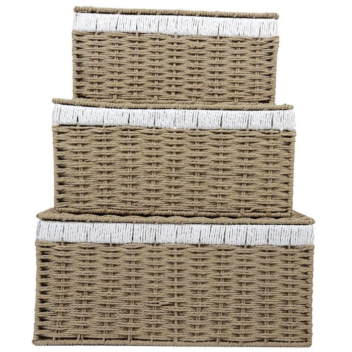 - Conjunto de tres cajas de distintos tamaños con asas integradas.