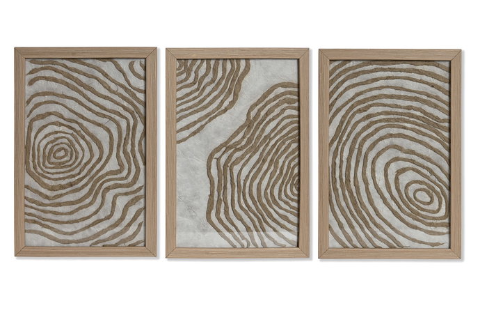 DKD Home Decor Cuadro Moderno Blanco Natural Set de 3 Piezas Cristal Papel Mache 2 x 30 x 20 cm