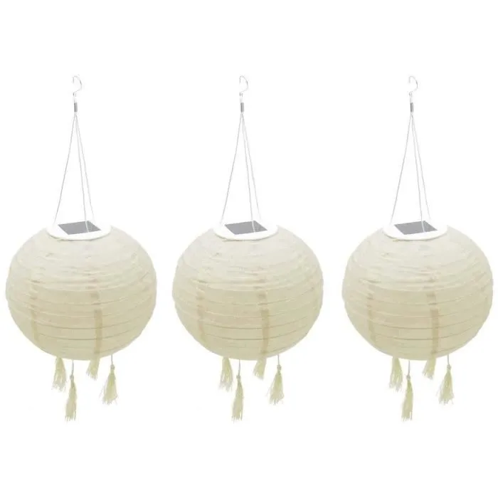 Juego de 3 faroles solares - LUMISKY - HIMALAYA - Ø30cm - Beige, crema y boda festiva - LED blanco cálido