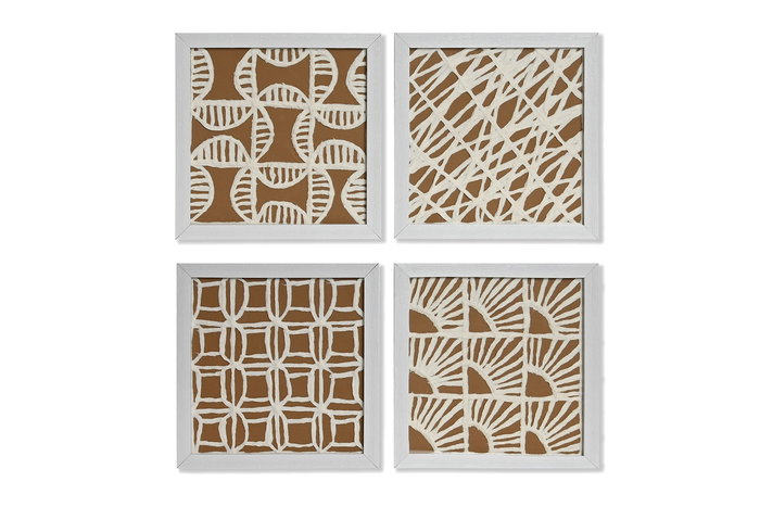DKD Home Decor Cuadro Moderno Blanco Natural Cristal Papel Mache Set 4 Piezas 22 x 22 cm