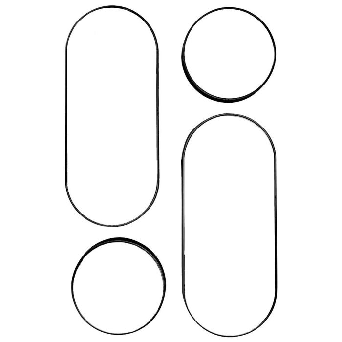 - Conjunto de cuatro espejos: dos redondos y dos ovalados. Con marco negro.
