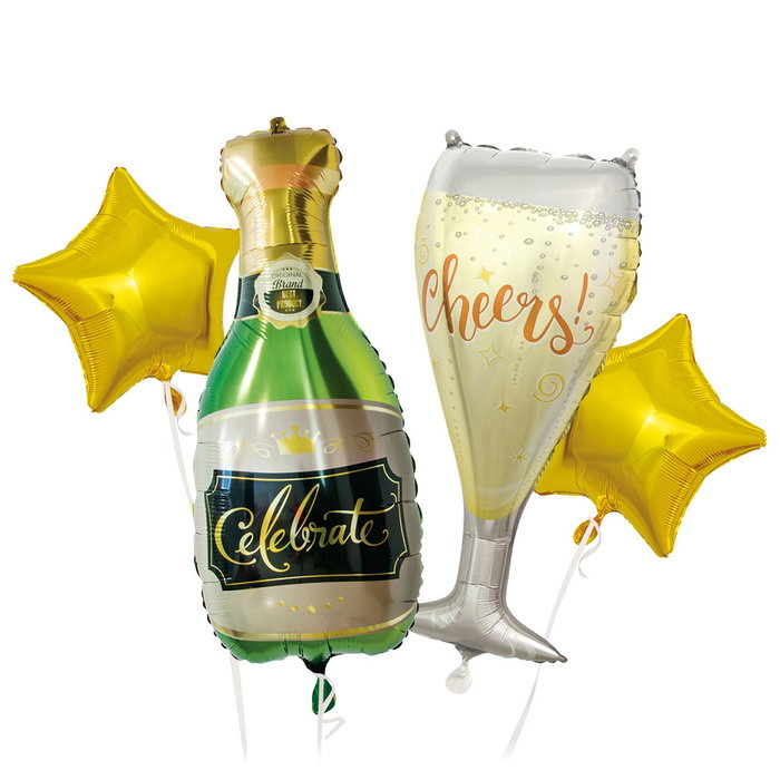 Party Time Juego De 4 Globos Tema Champagne Feliz Cumpleaños